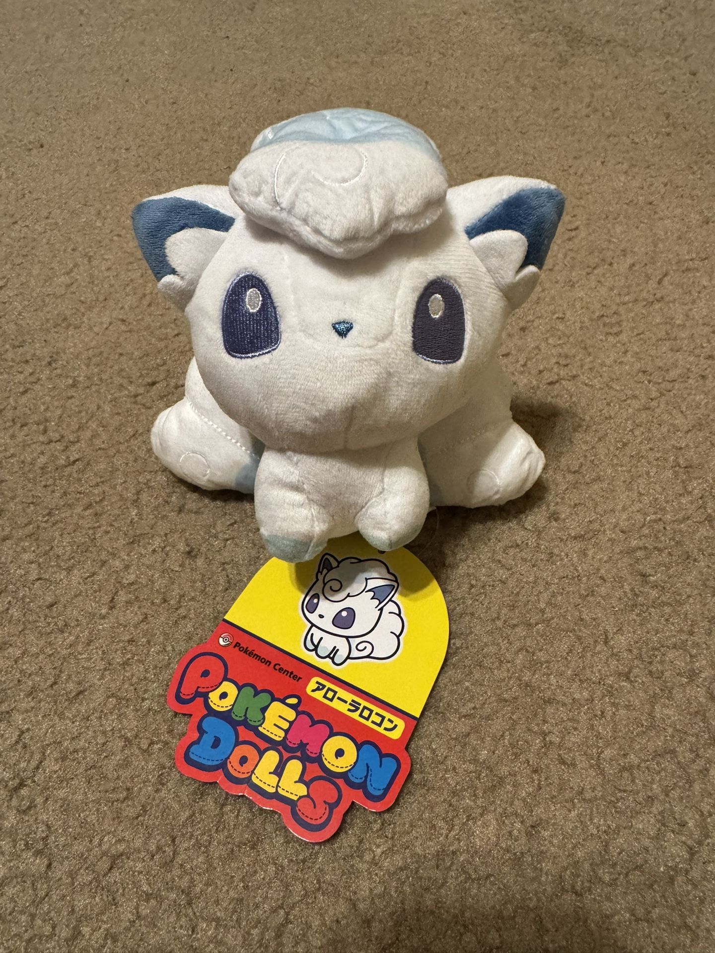Alolan Vulpix Pokedoll from 2017. Comes with original tags and everything. I have a bunch of other original Pokemon Center plushes that you cannot find anymore just let me know if you’d like to see them!