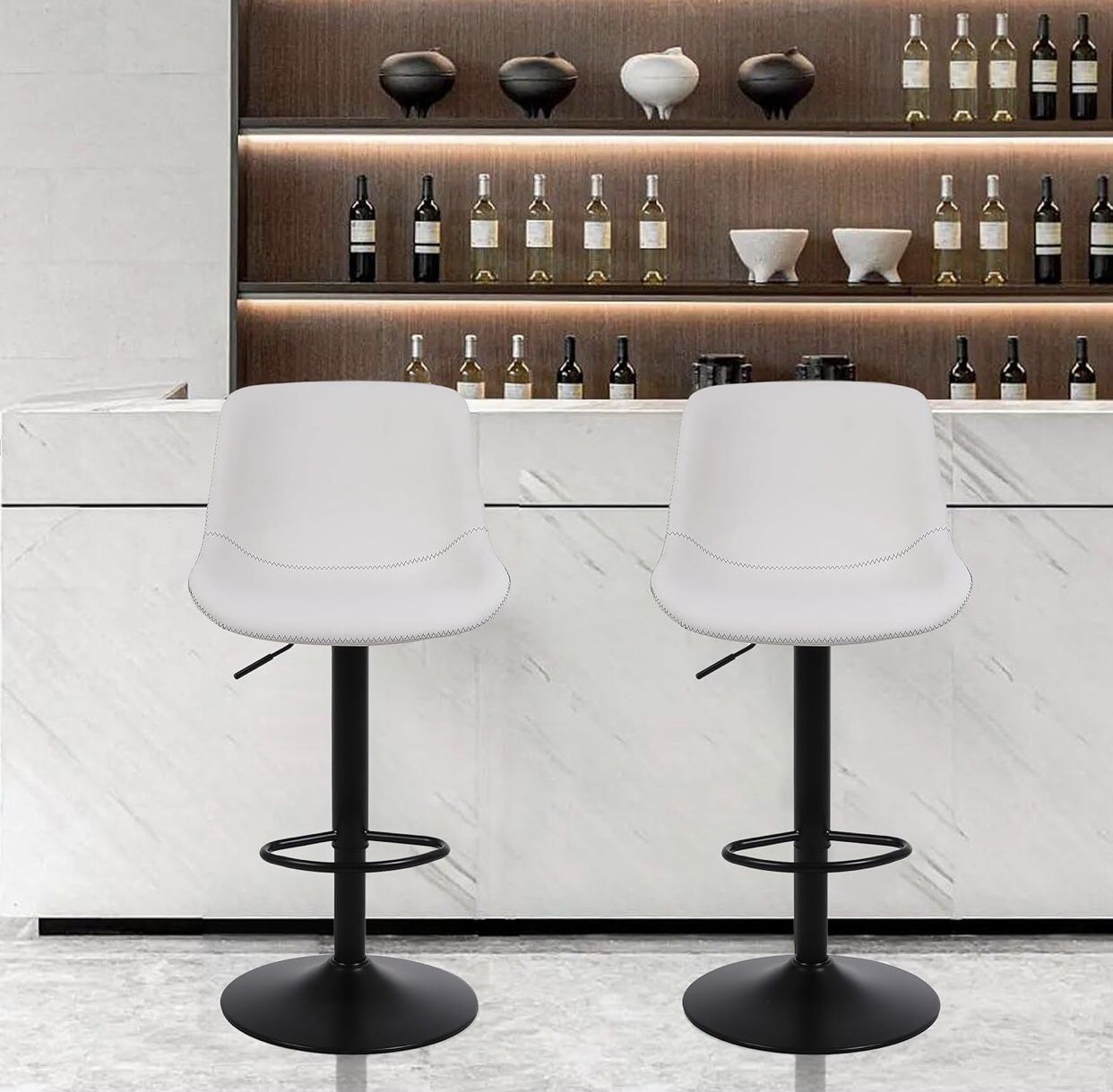 Bar Stools, Swivel Counter Height Barstools with Back, Adjustable Modern Bar Chairs, Tall Armless PU Leather Kitchen Island Stool (White, Set of 2)