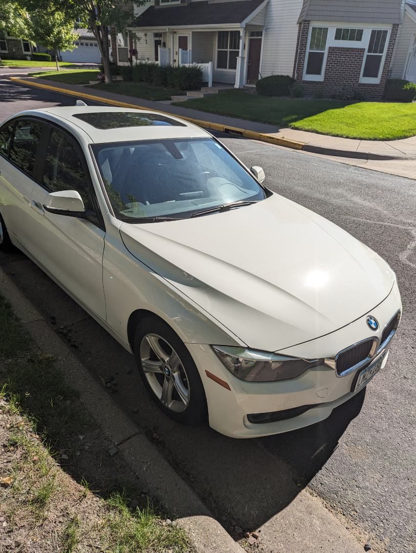 Clean!!! White 4 door BMW with sunroof. Does have a minor dent on back left lower bumper. Also has a minor crack in windshield, it is not noticeable to the eye. Please see pictures. I am asking $9500 or best offer! 320i Series xdrive AWD