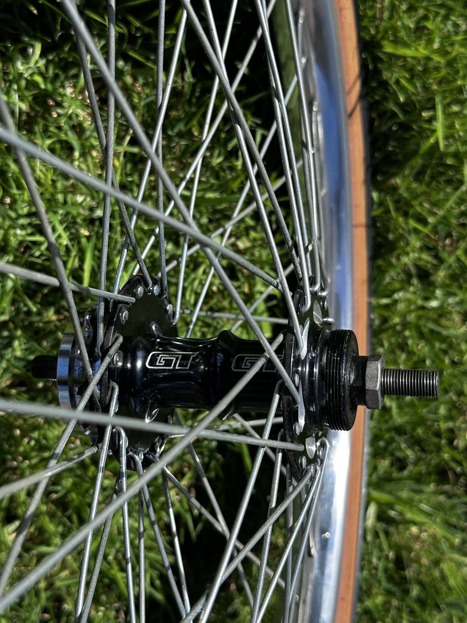 These 20” rims are Perfect for a BMX Show Bike Brand New Gt lp-5 GT tires Very well kept- ready to install on your Bicycle Open to trades (Gt,Hutch, BMX,Mongoose, Haro,Bassett,Cooks,PK Ripper) Rim loops will need to be polished if you’d like to make them stand out