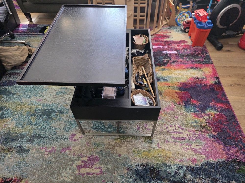 Black lift top coffee table in good condition. Dimensions: 23.5d x 39.5w x 18.25h