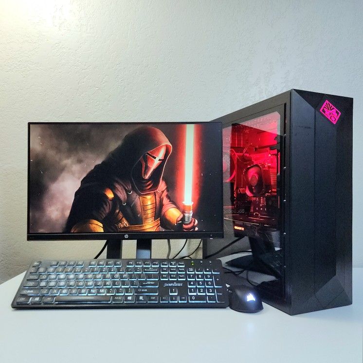 FAST shipping or local pickup from Tempe AZ! ¡Si, texto en Español! Launch your game with this FAST Gaming PC! It plays games at a mid level: GTA5, Fortnite, Roblox, Minecraft, Apex Legends, Rocket League, and MORE! Built from new and lightly used parts; it's technican tested: a quality Gaming PC at a great price! No locks or passwords, it's PLUG and PLAY! Specs Intel i5 9400 up to 4.1GHz, hexa 6 core CPU Omen Obelisk 25L case w RGB Controlled lights Gigabyte GTX 1060 6GB graphics card 16GB DDR4 RAM 512GB Nvme SSD boot drive 1TB extra storage drive Wireless AC (WiFi 5) and Bluetooth 8 USB, Headset, Mic, NIC DVI, Display Port, and HDMI (on graphics card) Win 11, newly installed, updated *case may have small marks Includes PC, power cord, keyboard, and mouse (monitor extra)