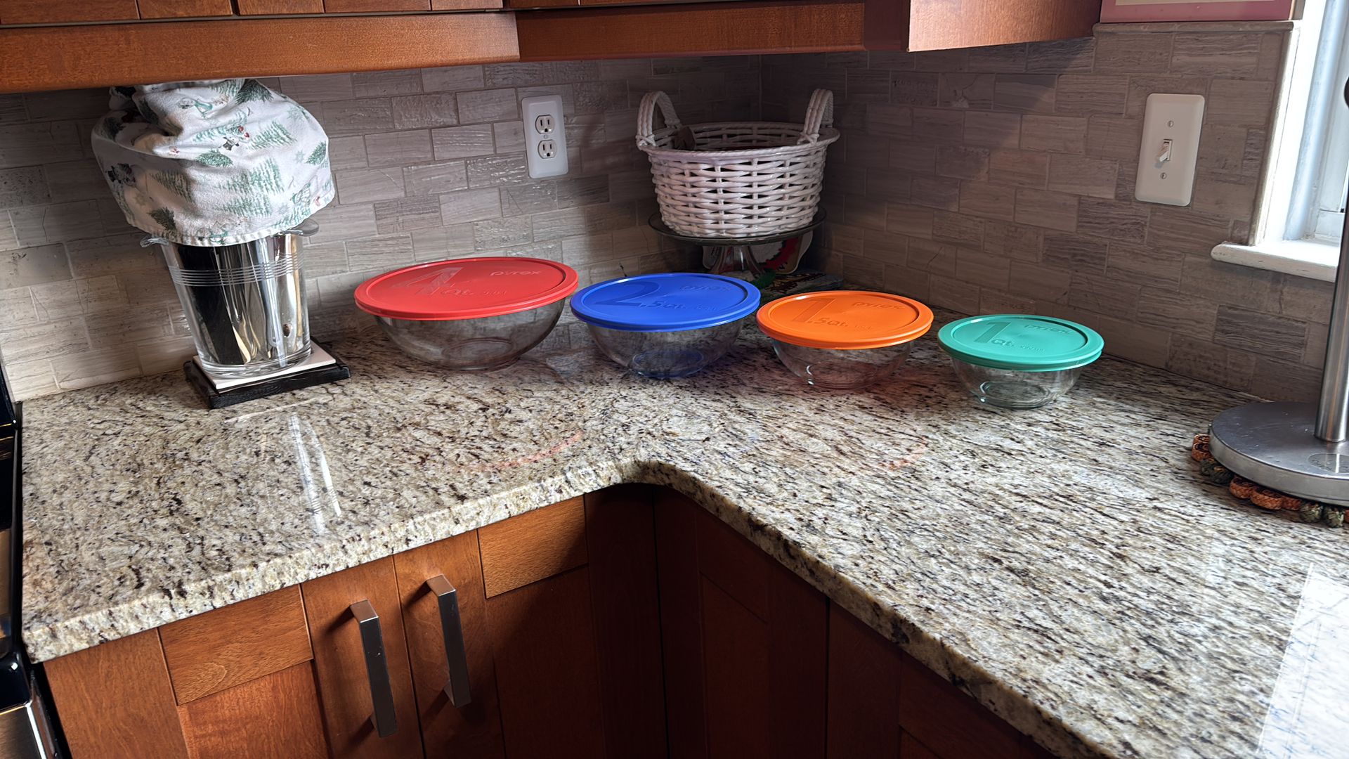 Set of four glass bowls with lids Pyrex not used all of them for 30 pick up