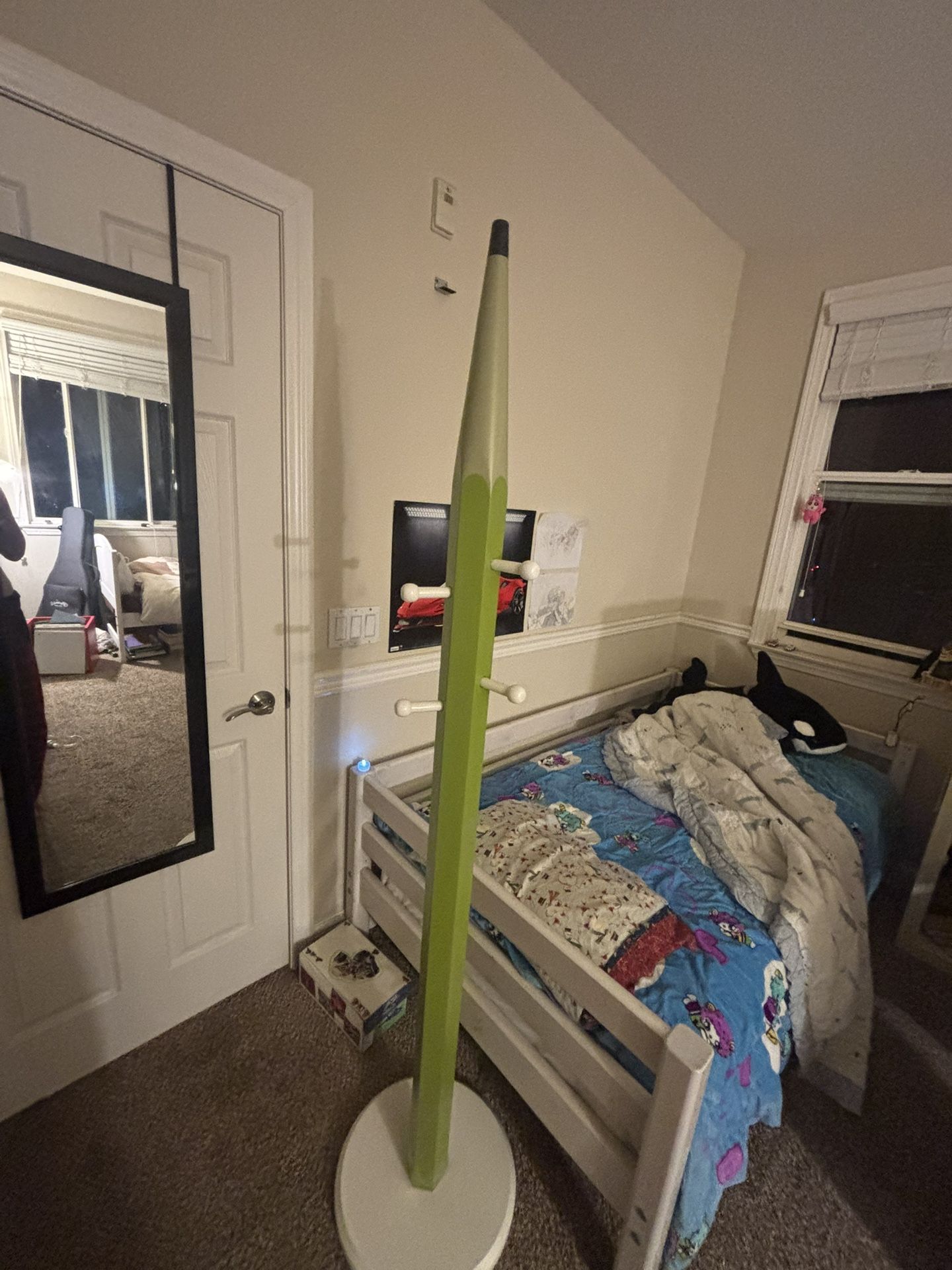 Pencil Coat hanger with 6 hooks. Taped at bottom due to cracks but stable