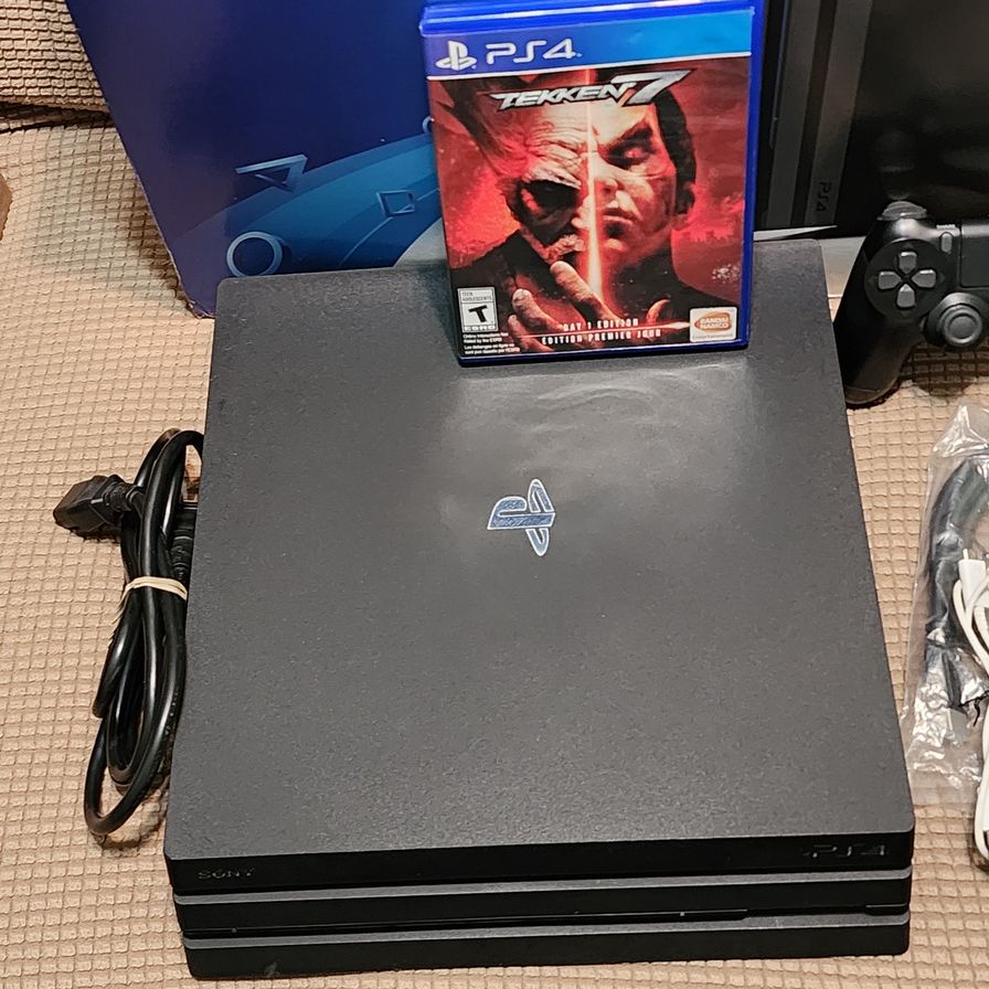 I have a PS4 Pro. It is in really good condition. I am also the game in the picture. I wasn't able to find charging cables or the hdmi, but I am including a new hdmi cable and after market charging cable. All works great. I got a PS5 on the release date, it hasn't been used since. I just power on today, it did some updates and it was reseted to factory default. The original box is not in great condition, but is included (Trade or Sale)