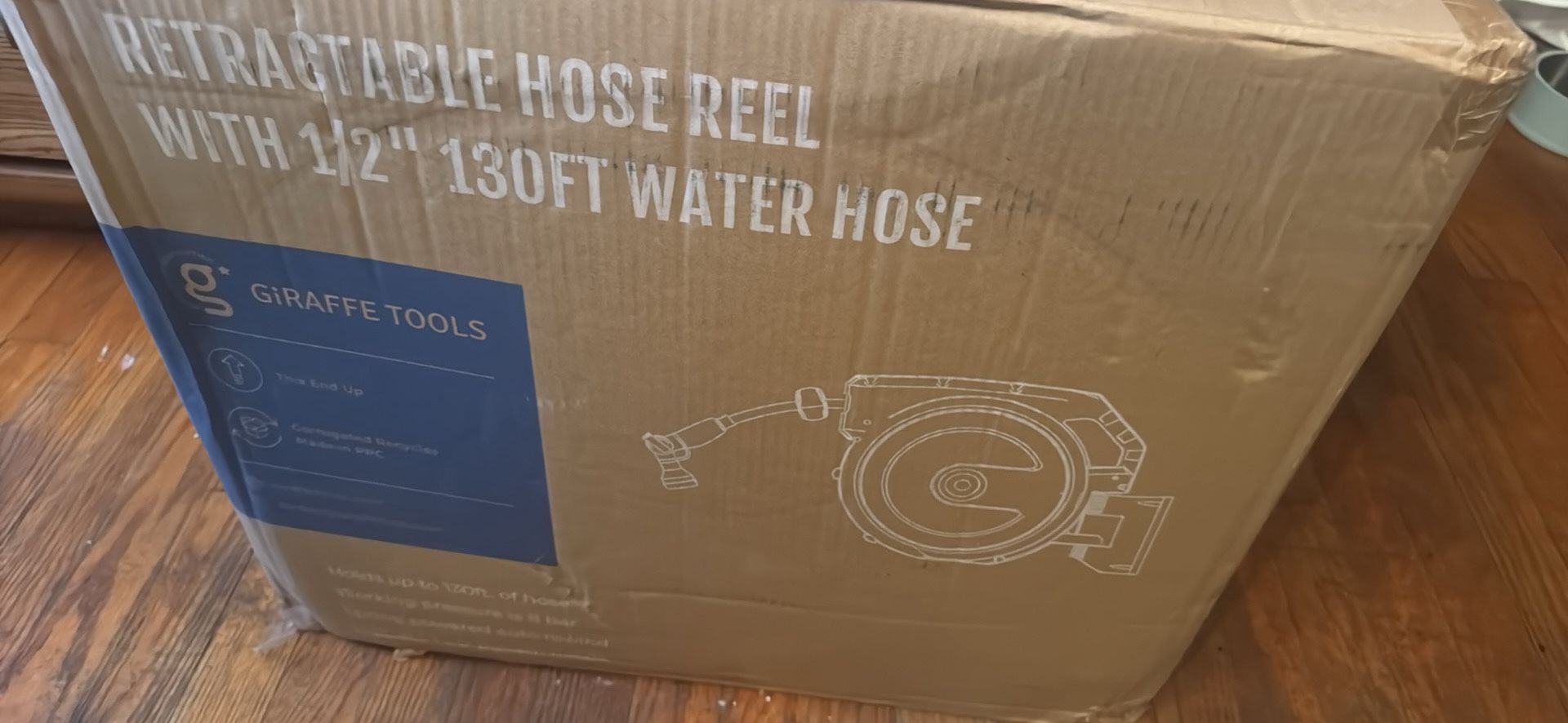 Giraffe tools retractable hose reel with 1/2 ‘’ 130ft water hose new in box never open