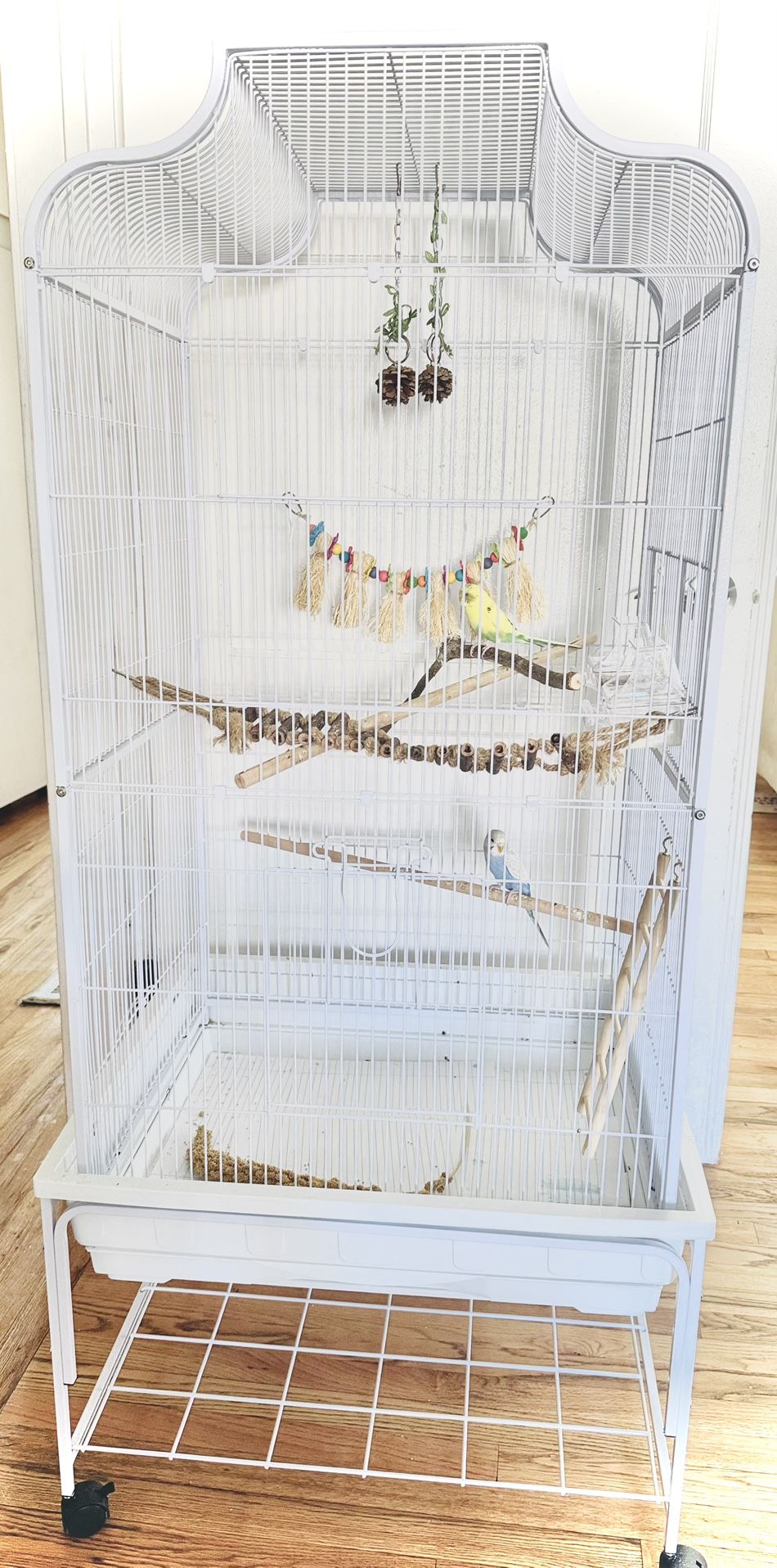 Great condition! Includes all toys, branches, food and water containers, etc. rolls on wheels.