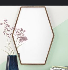 Two matching distressed wood hexagon mirrors decor