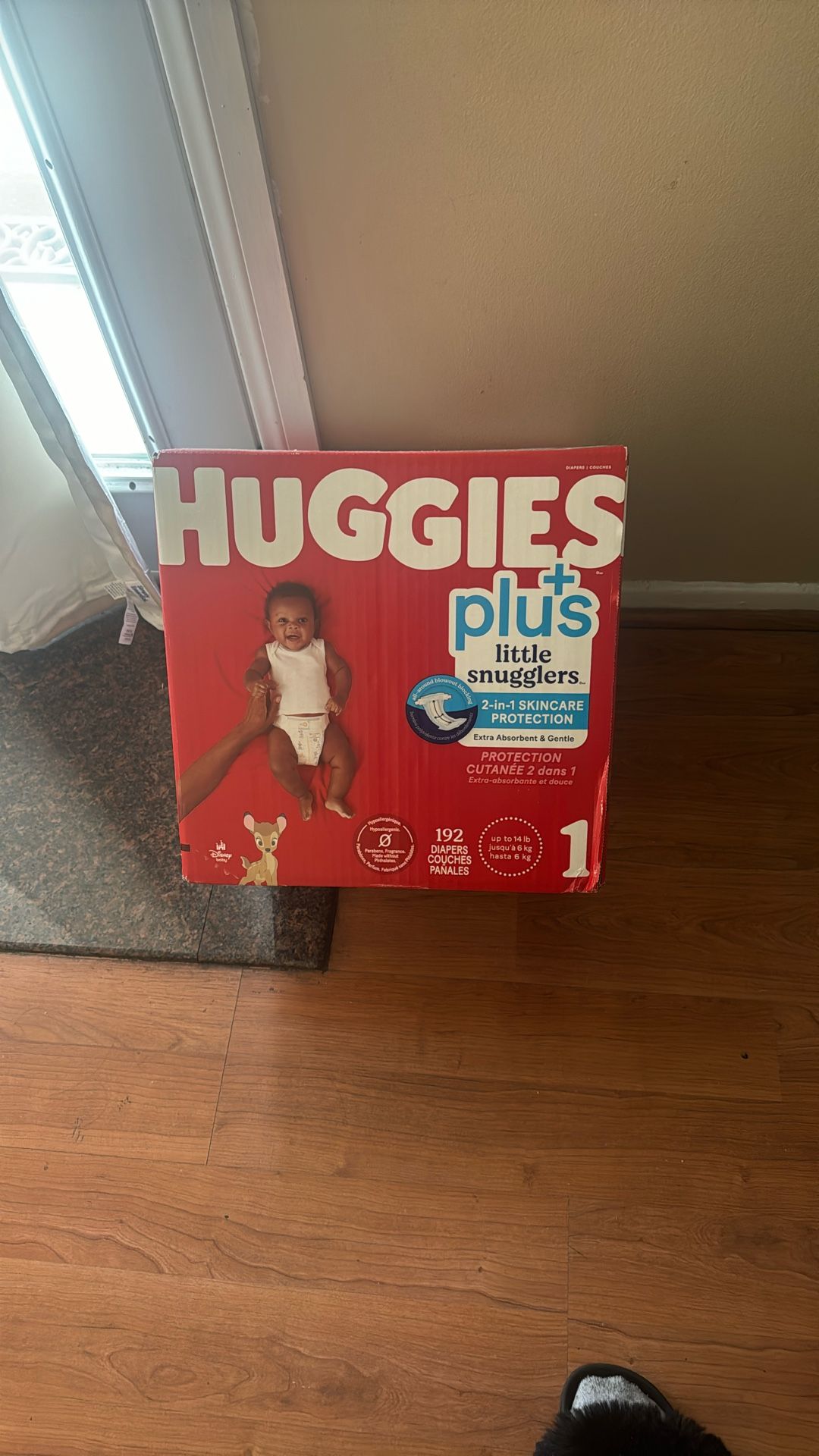Unopened box of baby diapers retail at 60$ with some extra diapers from a previous box that we didn’t end up using !