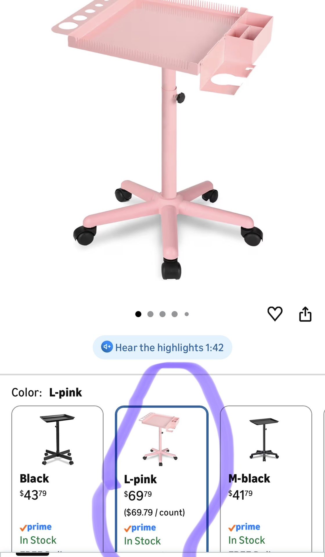 Extension Salon Tray Hair Extension Cart Tray Pink Multi-Function Extensions Rolling Tray with Blow Dryer Holder and Storage Platform
