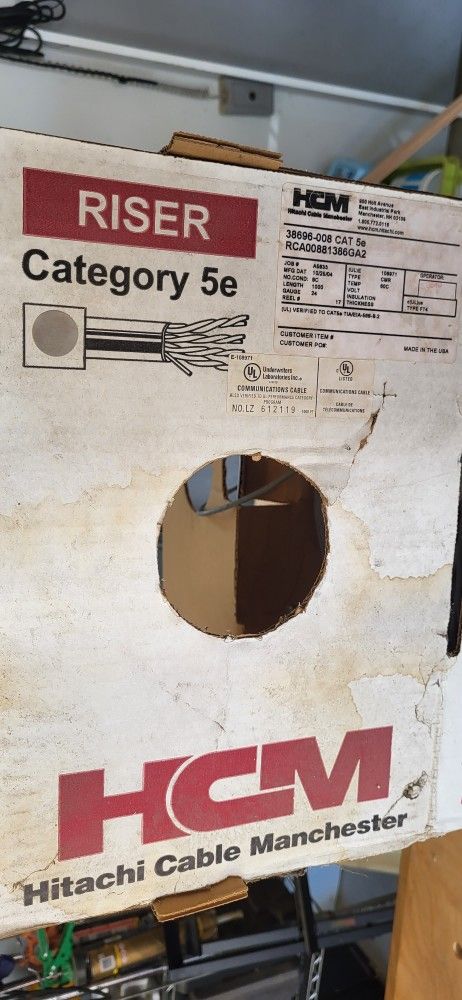 I finished running all the wire I am going to run in my home and have this box of 5e cable left over. I would say there is at least half the box of cable left. Need shorter length let me know and I will also sell by the foot.