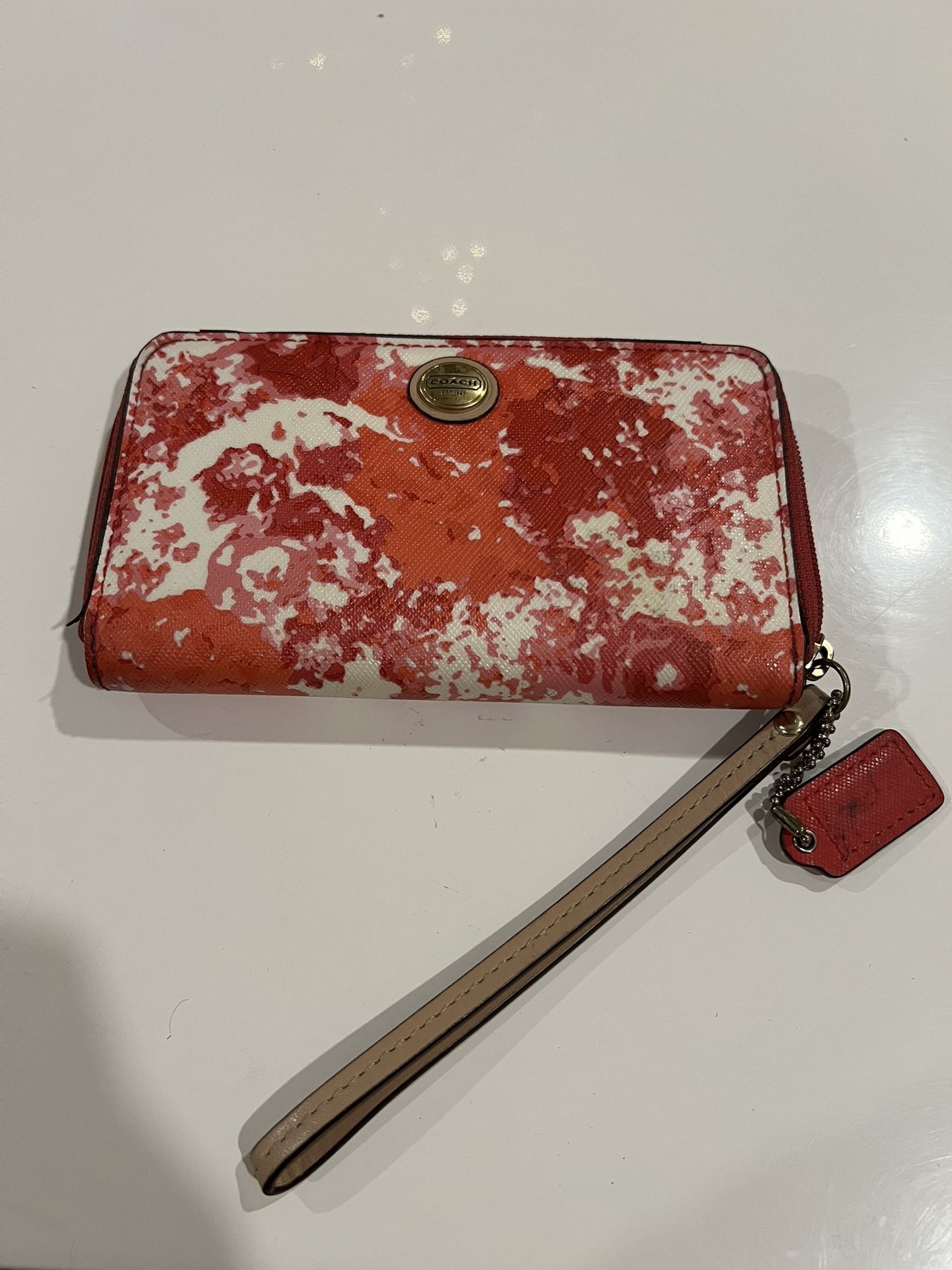 Coach Pink White Peyton Floral Small Wristlet Pocket Zip