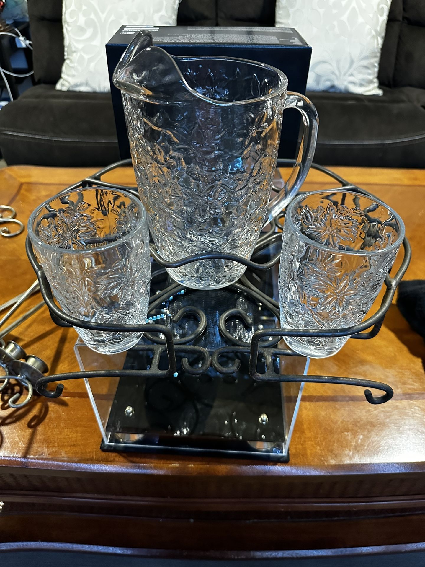 Juego de jarra de cristal con par de vasos porque el otro par se me rompió. Sin base y sin caja.