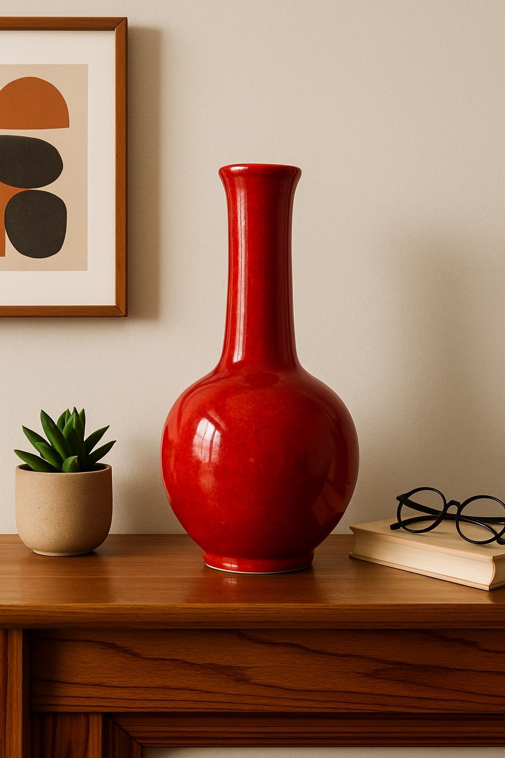 Italy 1960s Red Glazed Tall Vase Glossy Rosso Lava Oxblood Style, 2.5x12” SHIPPING IS AVAILABLE PLEASE NOTE: The first image is an artistic representation; all other photos and the video show the actual item. Pictures are part of the description, please check them & let me know if you require additional ones. Great condition consistent with its age. Defects & imperfections – please check pictures made under the bright light & magnification: • Small glaze pop on the body • Minor surface scuffs from handling • Light wear around the rim • Tiny firing specks in the glaze (typical for Italian studio pottery) Fascinating Fun Facts: • This deep, saturated red glaze is often called “rosso lava” in Italian midcentury ceramics — a modernist take inspired by historical copper-red glazes. • Many 1960s–70s Italian studios preferred tall, bottle-neck silhouettes like this one because they showcased dramatic glazes without interruption. • Export pieces were frequently marked only with a simple “Italy” sticker, which is still present on this vase. • Tuscan and northern Italian workshops produced some of the most vibrant glaze palettes of the midcentury era - pieces like this are highly collectible for MCM décor lovers. Dimensions: 2.5 x 12 in Weight: 2 lb 13 oz Love more than one item from my store? Feel free to message me—I’m always happy to combine shipping or create a custom bundle just for you.