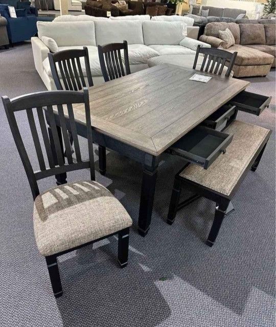 ♥️Valentine's Day Sale TYLER CREEK BLACK-GRAY DINING ROOM SET Table+4 Side Chairs+Bench