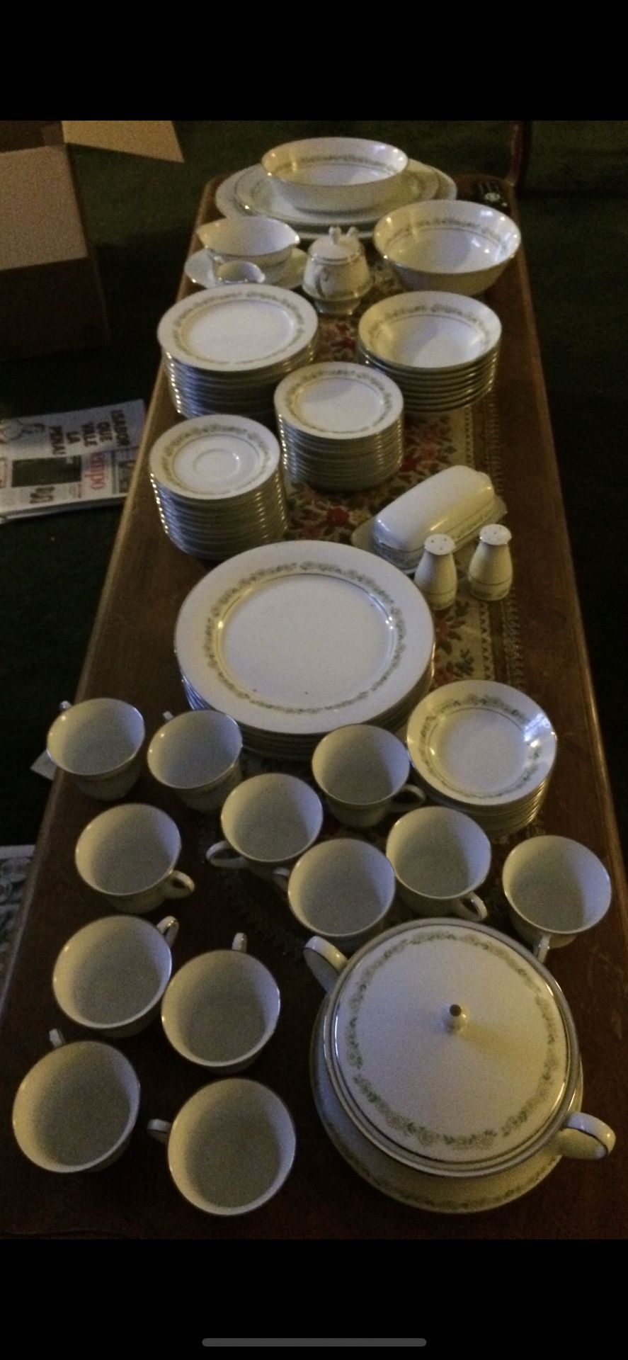 Vintage Dining 12 place setting , with many extra pieces. On E bay for way over $1000. # Dinner plates , # Dishes # Antique