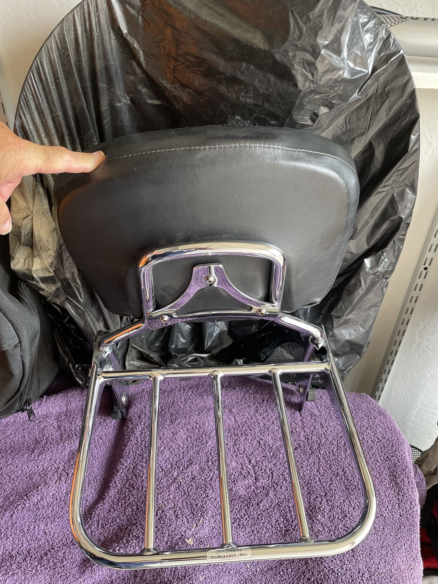 Harley seat back rest with luggage rack and cushion excellent condition $175 windscreen $75 came off a Harley road king
