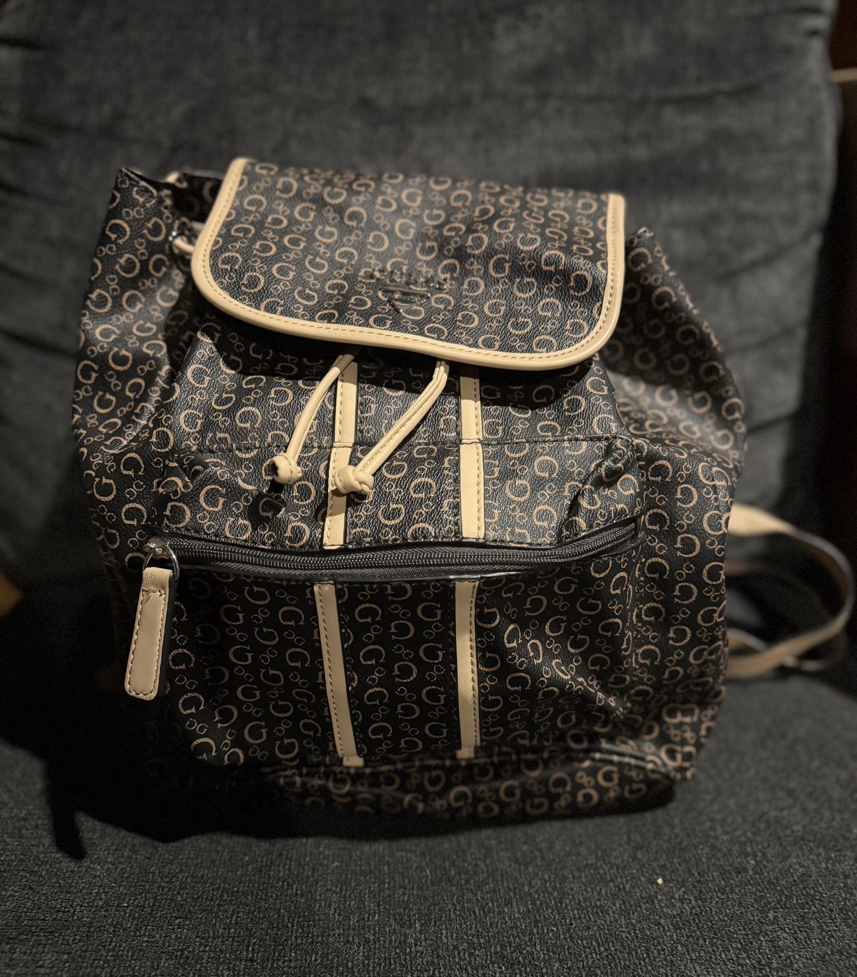 Guess Brand. Brown/Tan Leather Drawstring Backpack Bag. Light use, like new condition.