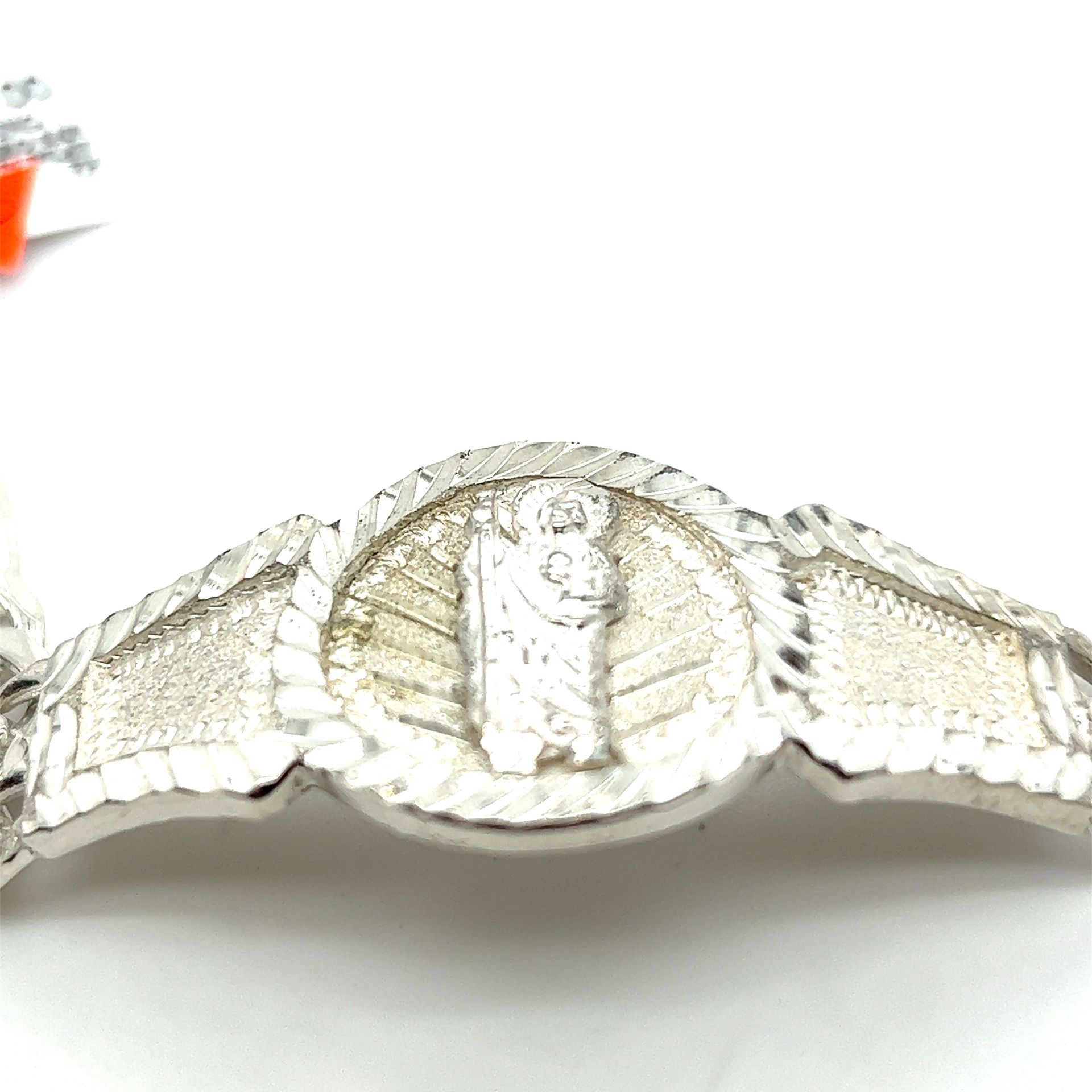 925 Sterling Silver Double Figaro San Judas Bracelet Satin Inlay 33.90grams 8” 161810 4