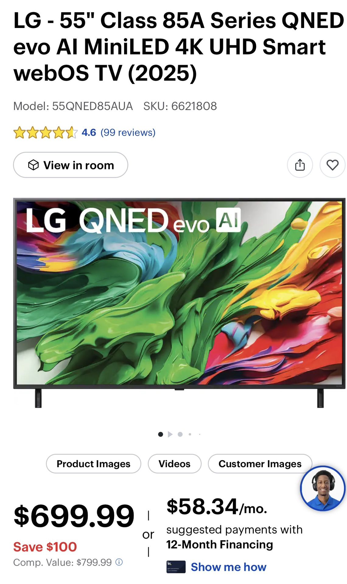 New LG 55-Inch Class QNED evo AI QNED85A Series Mini LED 4K Smart TV w/AI Picture, AI Sound, HDR10, AI Super Upscaling 4K, Filmmaker Mode, Wow Orchestra, Alexa Built-in (55QNED85AUA, 2025) price is negotiable, Tv is seal pack New Brand