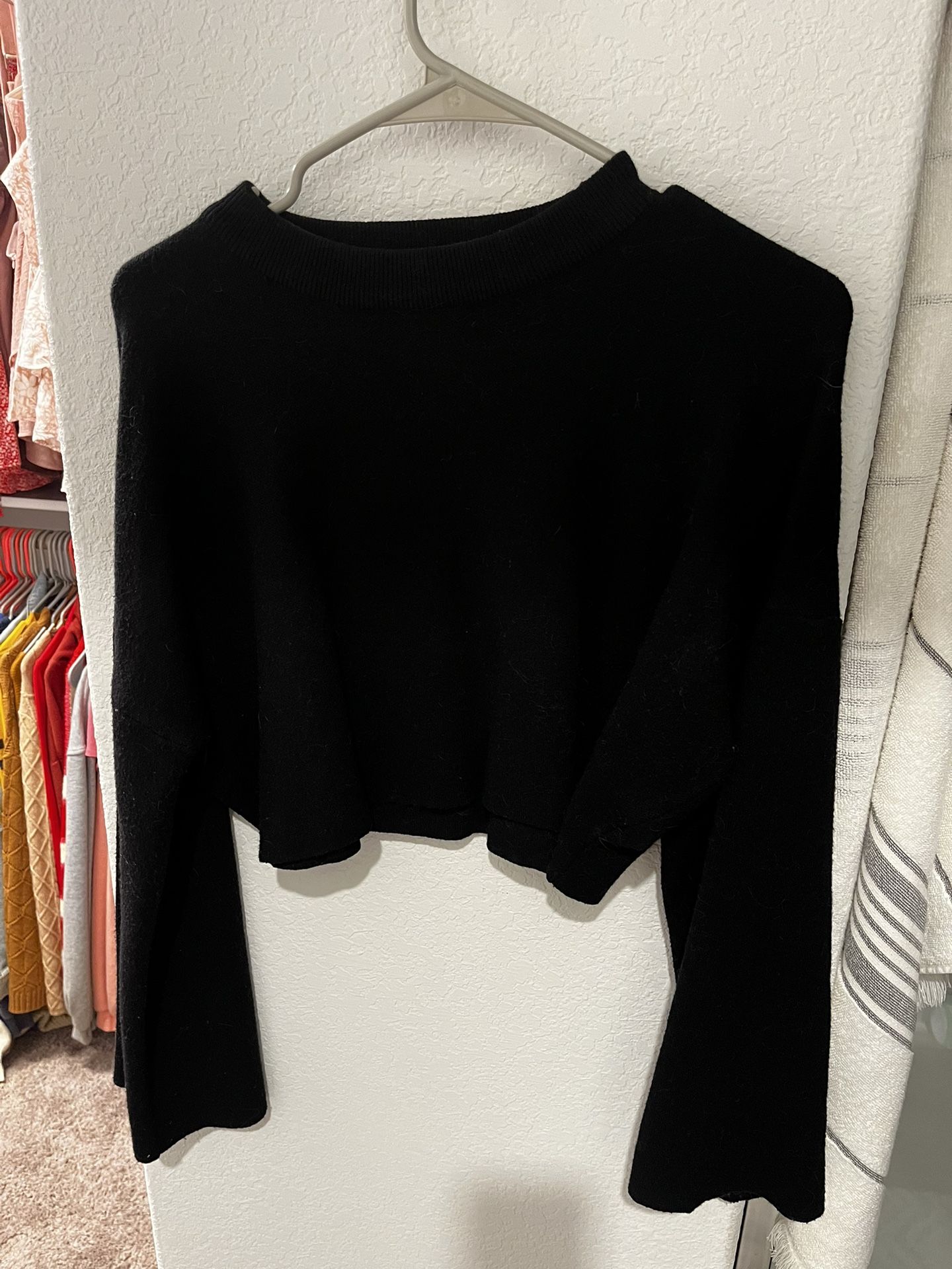 Size xs/s. Cropped sweater & flared sleeves. Thick material. Pickup in Round Rock or shipping available.