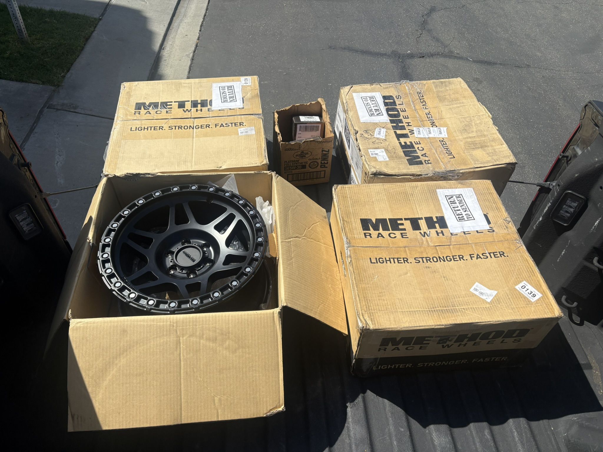 All 4 wheels included with full matching lug nut set. A bit of back story, the shop ordered these for my truck, ended up not working out and I can’t return them. They haven’t been driven on, just opened box. Brand new. Everything on the receipt is what is included Looking for $999 OBO