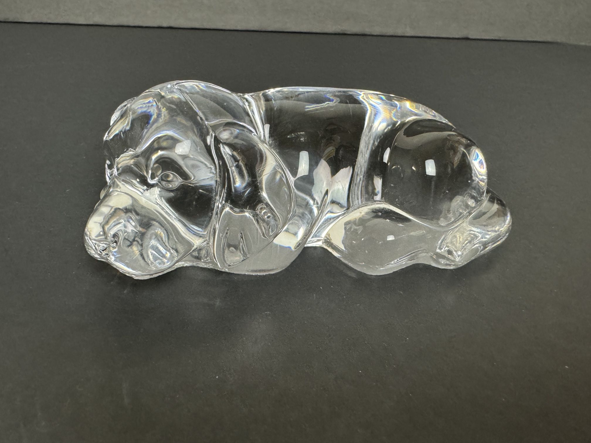 Art Glass Slipping Dog Puppy Peperweight 4.5” Long