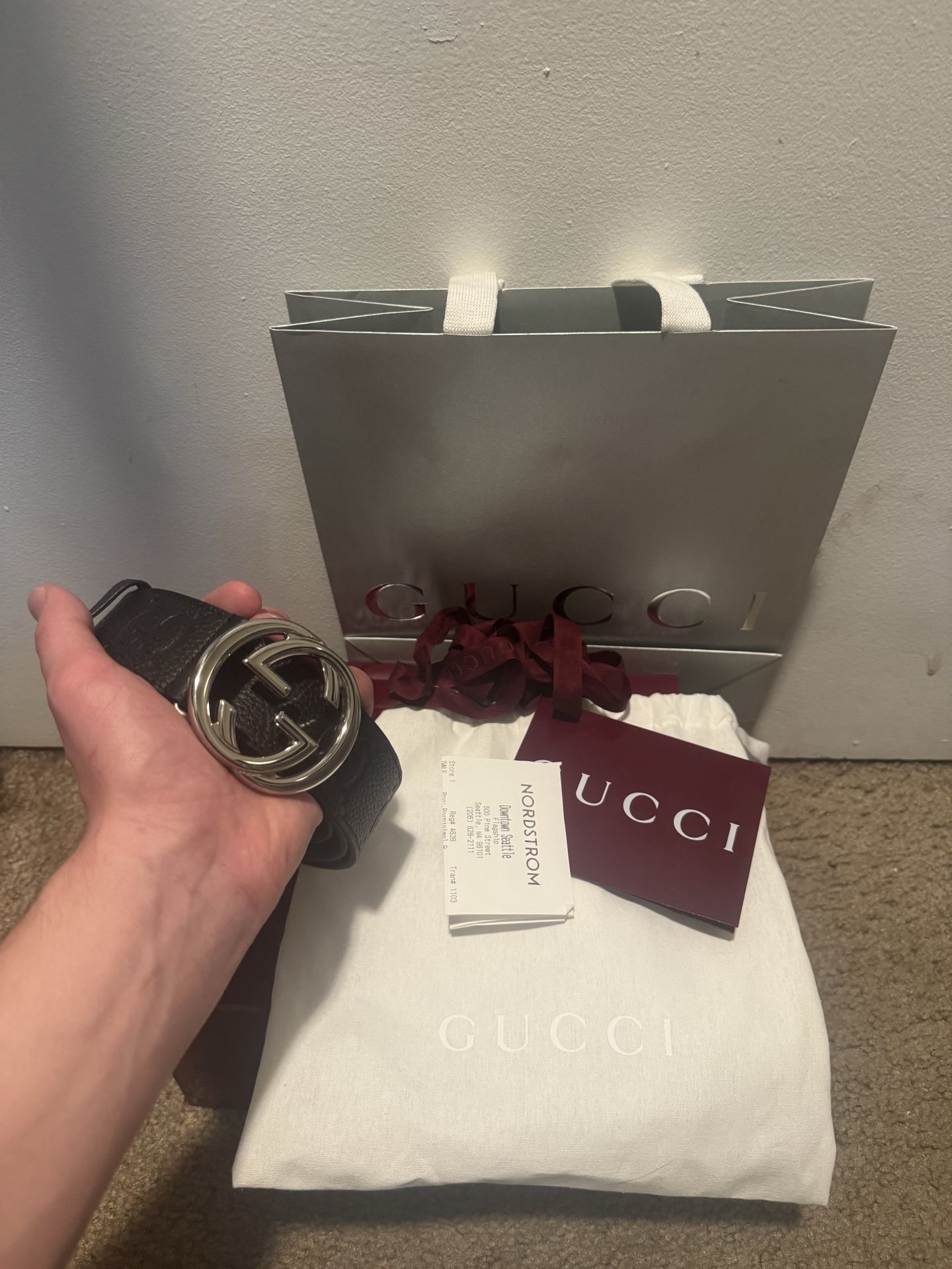 Black and silver GG logo Gucci belt 100% authentic - Worn once - come with OG box , OG Nordstrom Receipt and dust bag -No flaws scratches or scuffs Super clean every day simple wear belt Open to reasonable offers no lowballs ❌ Dm with any questions or offers!