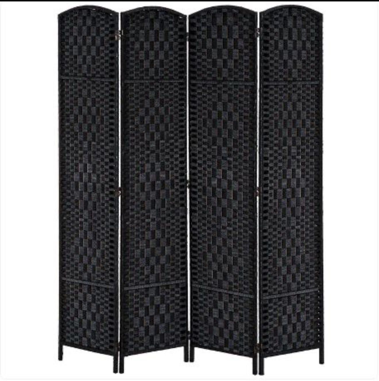 Room Divider 4 Panel with 360° Hinges, Paper Rope Diamond Weave, 6 Ft. Tall, Black, 830-161BK (5218)