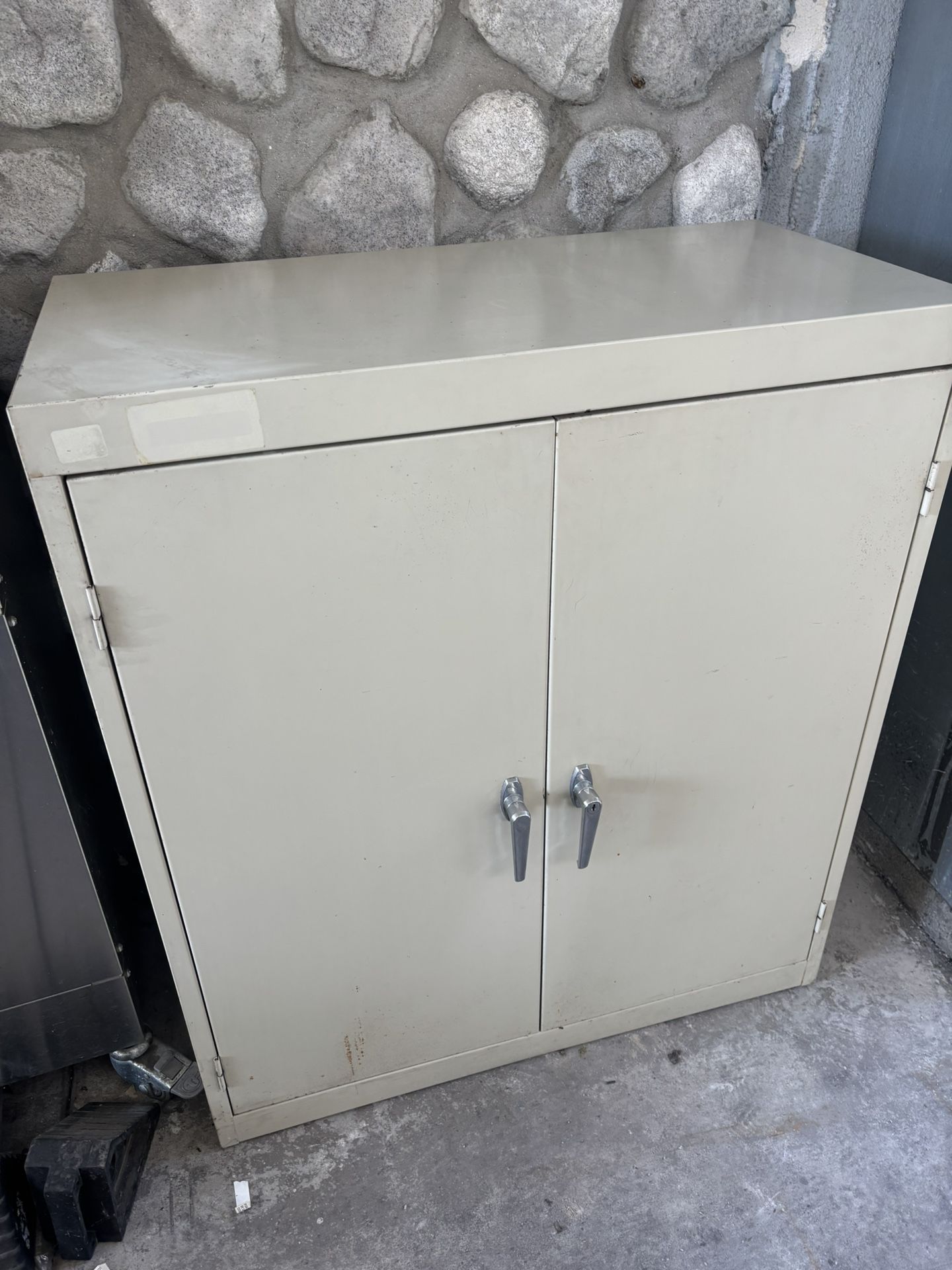 Metal storage cabinet in good condition 42” tall x 36” wide x 18” deep $120 obo