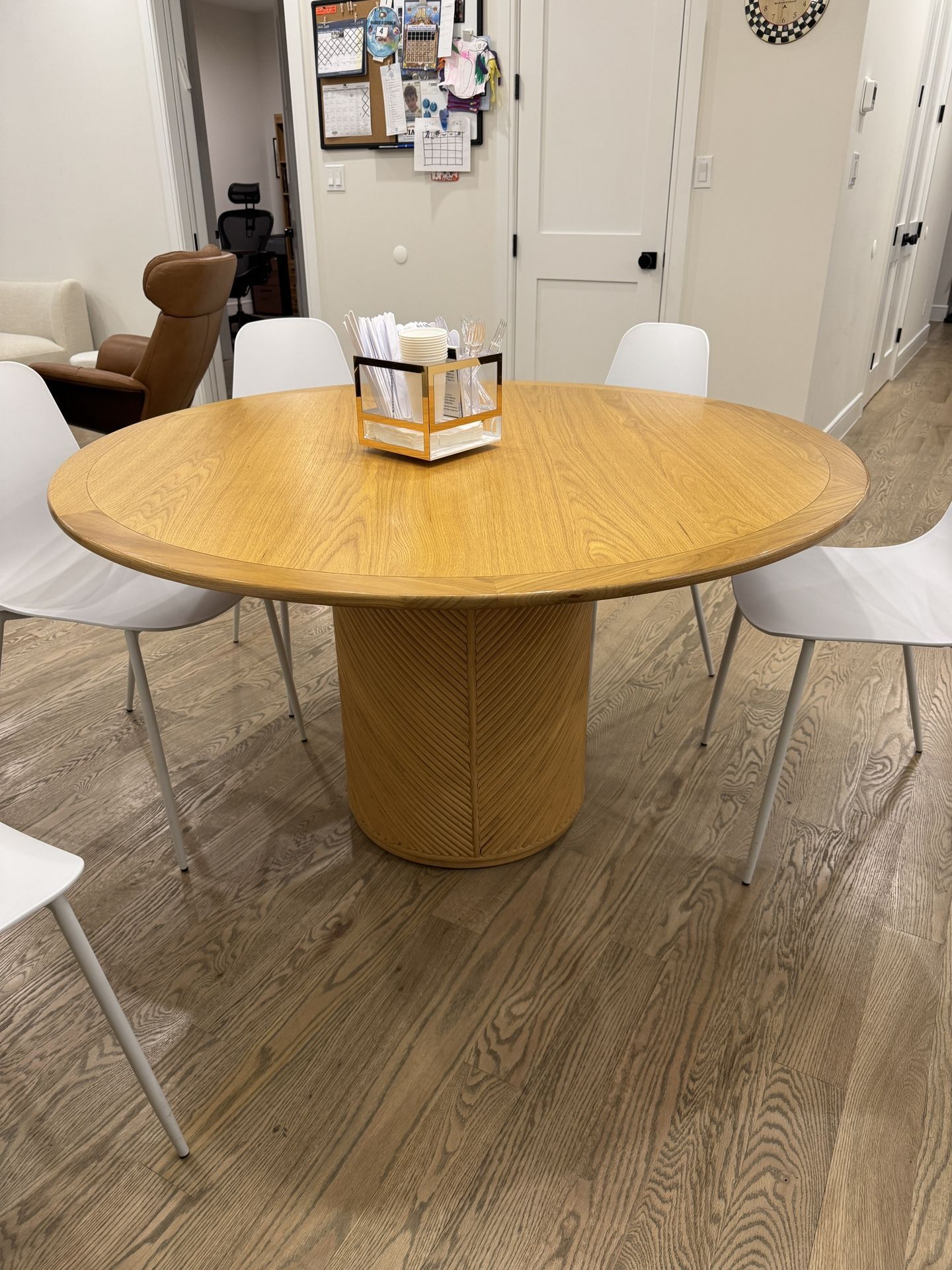 54” round wood dining table made by Article. Great condition. Used for a few months. Retails for $1,300