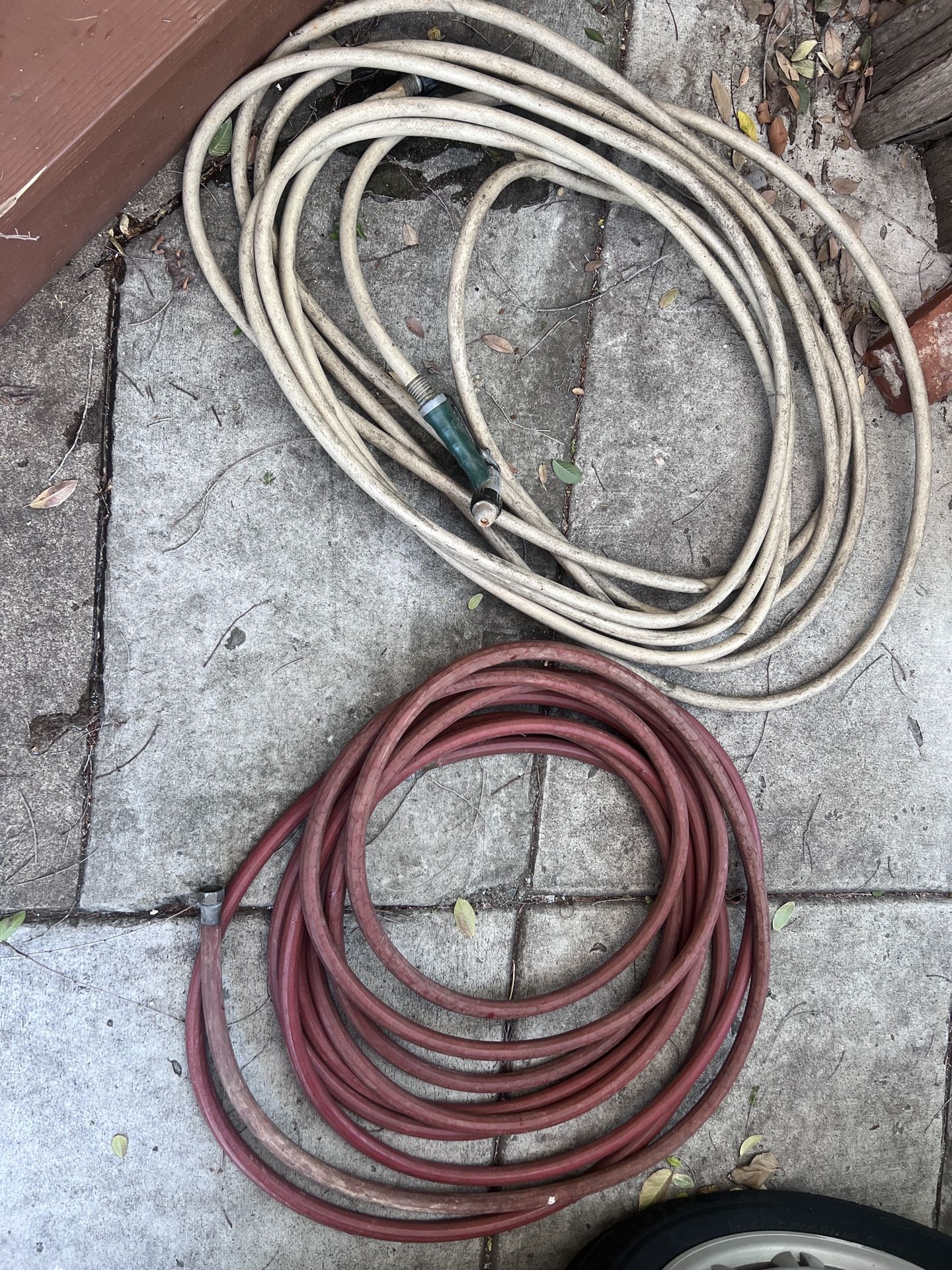 2 hoses. They each have a small hole in them, near the end, so could be cut to get rid of the holes. One of them has a sprayer stuck to it. Each are 50', I think.