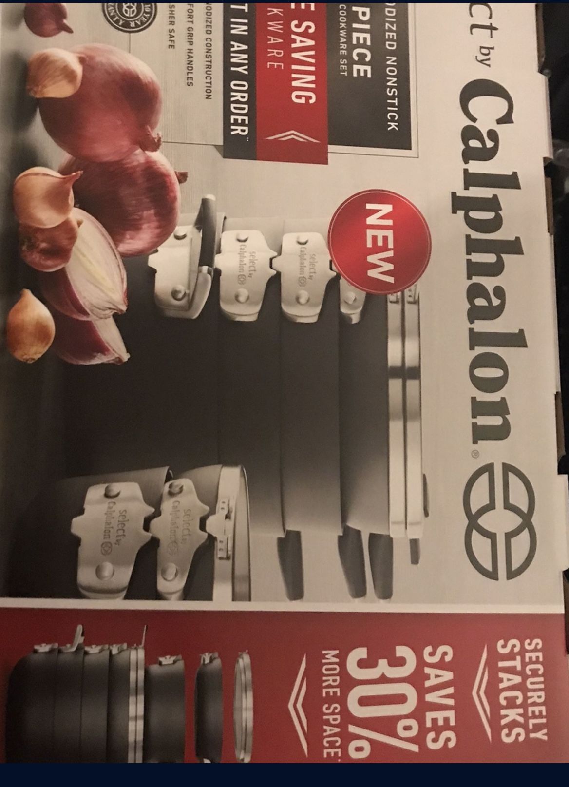 Brand new still in its original box. Has never been used of course. It’s a 9 piece set. They’re stackable pots and pans so it’ll save space in your cupboards and organize nicely. They weren’t purchased that long ago. It retails for $250