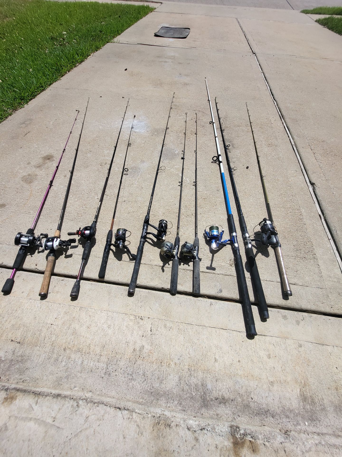 All combos $25 each. Individual reels $10 each. One baitcaster is a left-handed. Message for address to come and see them to avoid questions.