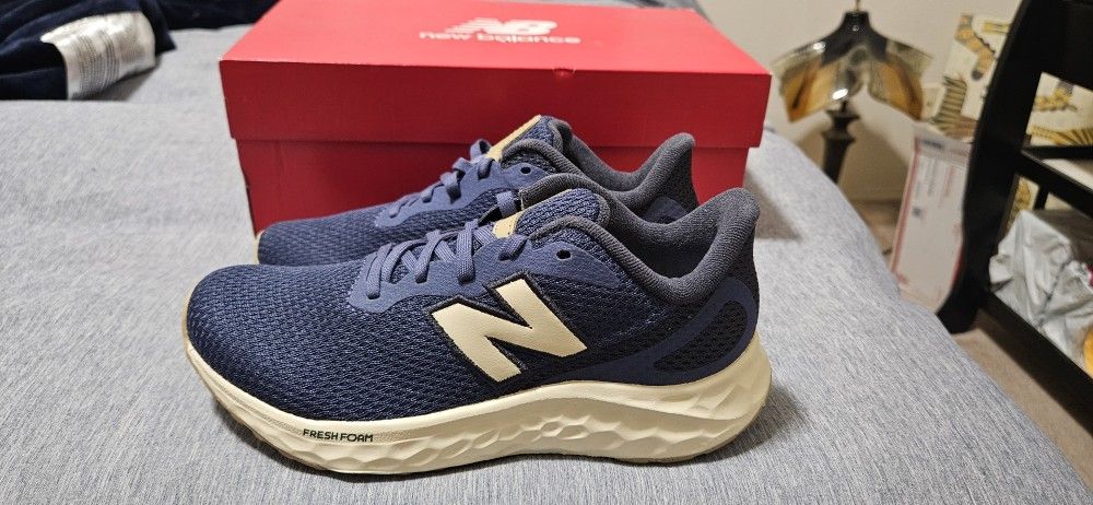 New in box Navy blue and tan running shoes, too small for me. lightweight Fresh Foam midsole, breathable mesh upper, and durable rubber outsole. Designed for all-day wear
