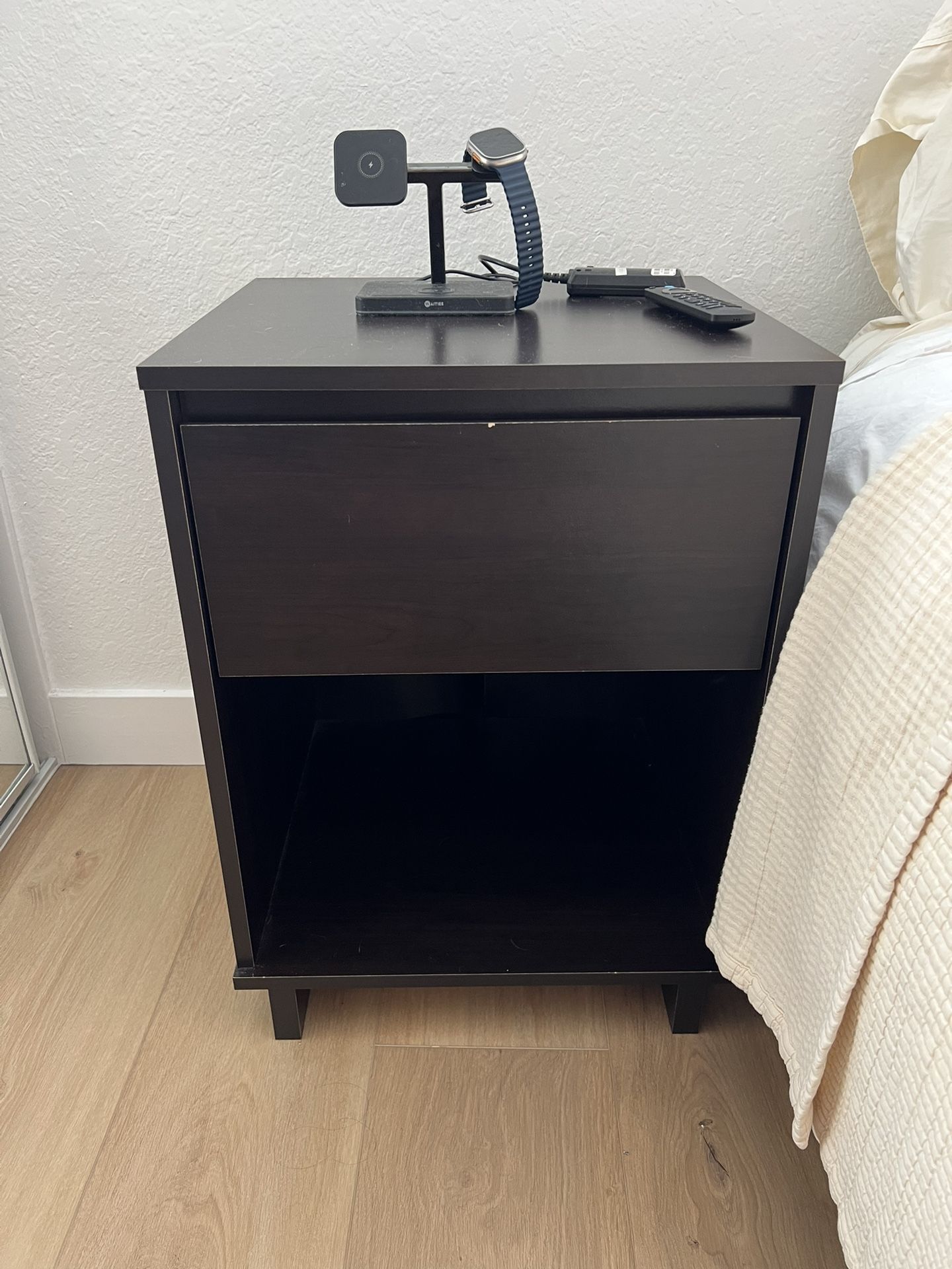 2 nightstands purchased from target. In good condition. 1 of them has a small nick which is shown in a picture. Pick up only in Encinitas. Dims: 24.5”x17.25”x19”