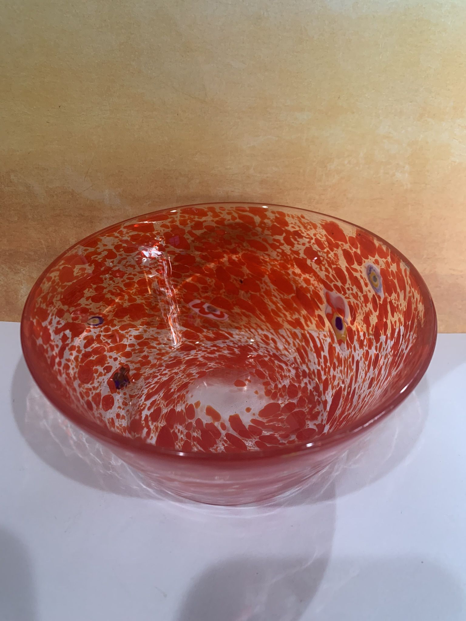 Small red blown glass bowl. Approximately 5” in diameter and 3” high