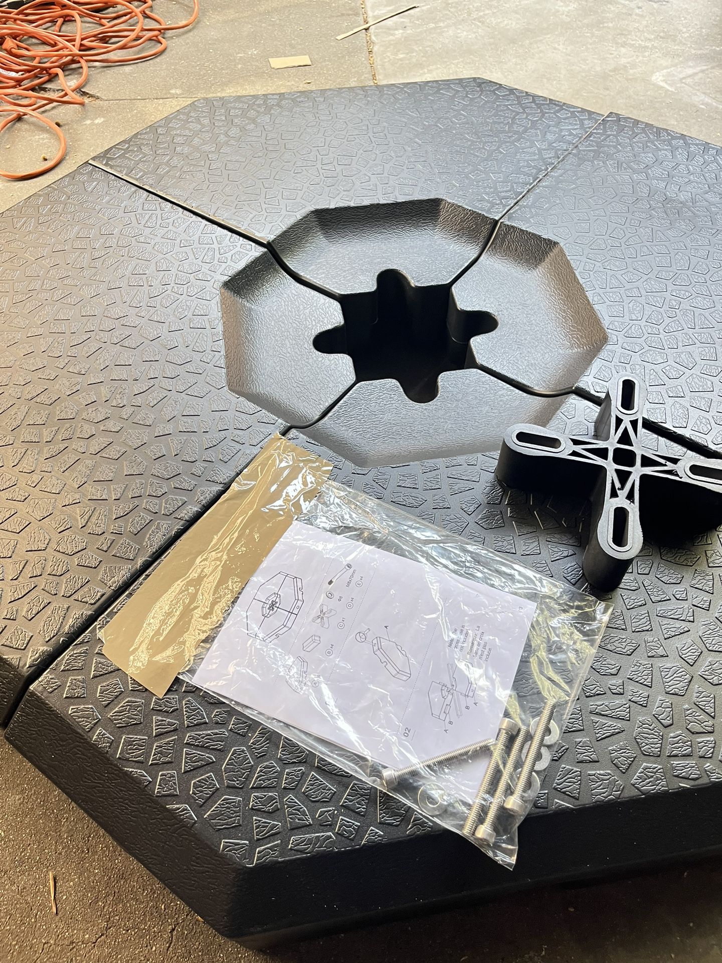 This umbrella base combination of durable PE material and excellent blow molding technology, it can ensure weather resistance and long-lasting use. Four plates are connected by four connectors and a heightening pad and the sturdy 4-plate structure is very easy to disassemble and carry. Most importantly, you can fill it with water so that it can weigh up to 350 pounds, ensuring the stability of the umbrella. Also, the easy-to-fill filling ports can help you fill quickly without wasting time. The concave handle on each plate are also easy to move and store. And unique octagon appearance adds elegance to your outdoor space, perfect for patio, garden, courtyard, porch, and poolside.