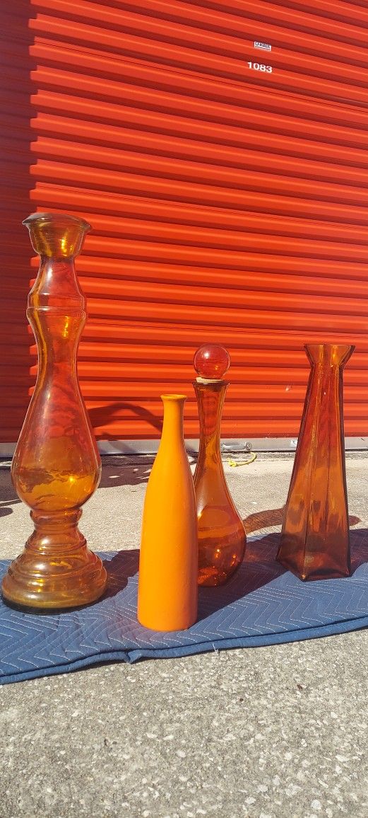 21 tall and thick decorative bottles and Vase Tangerine color 4 pieces