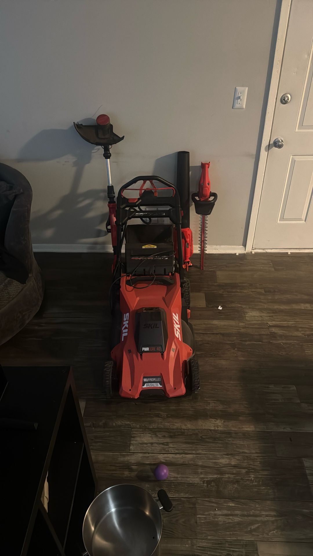 Selling a set of 4 lawn equipment. Don’t have the battery for 2 in the set, (weed wacker, saw). I reuse the battery’s for each item. And weed wacker blades are gone.