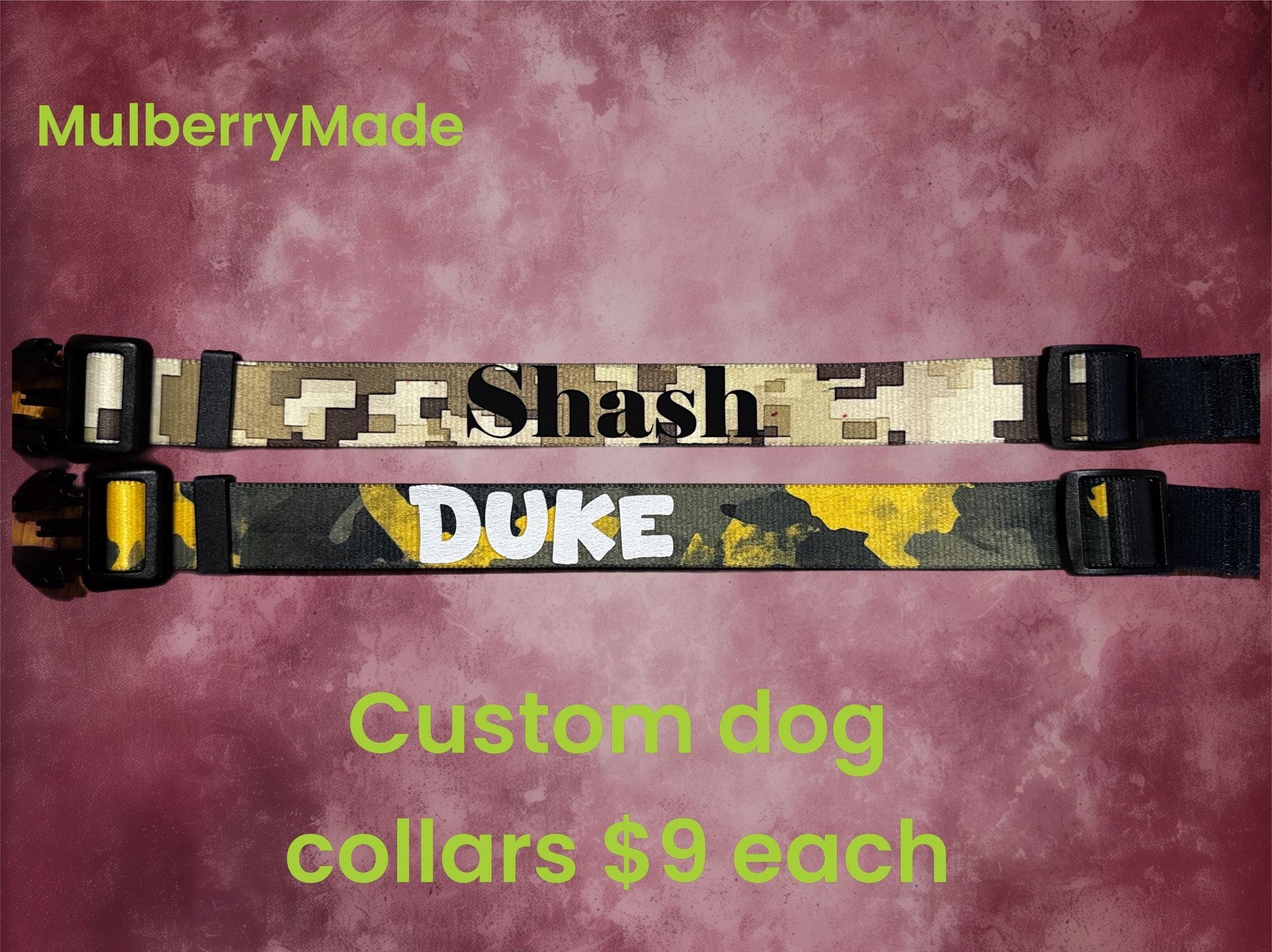 Custom dog collars with names. Can take almost any image and put it on the collar for you. Let me know what you would like. Pick up 75th and Lower Buckeye. Small buisness, brand new, custom, dog, pig