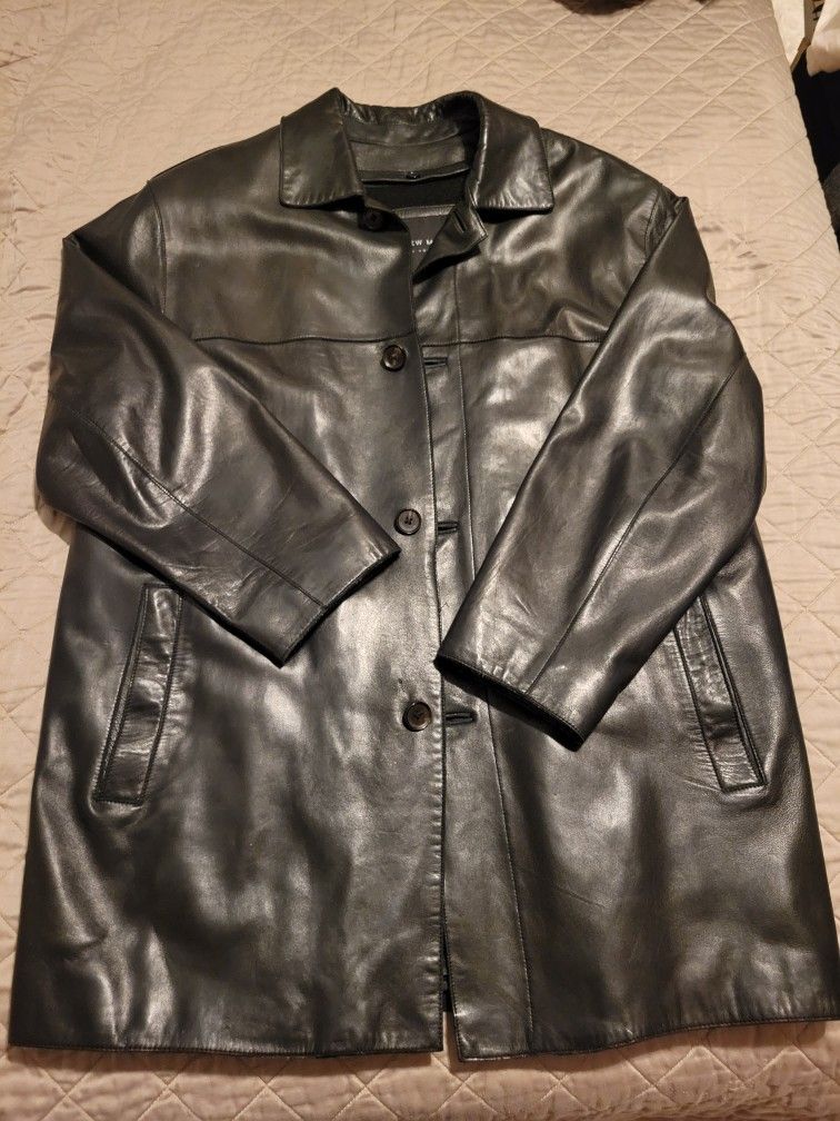 Andrew Marc cuir leather jacket. Versatile 2 in 1 jacket with removable inside layer. The 2 layers together add warmth for colder weather. By removing the inside layer you have a lighter jacket too.
