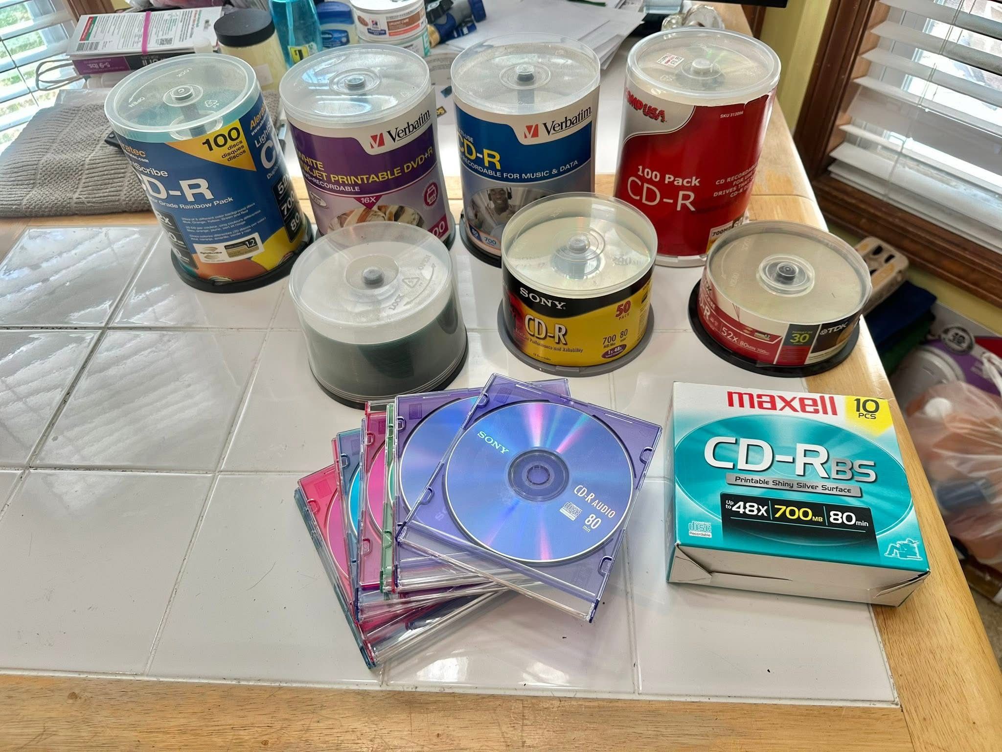All are new never used 90 dvd-r of 100 10 cd-r of 10 27 cd-r of 30 45 cd-r of 50 44 cd-r of 50 97 cd-r of 100 76 cd-r of 100 86 cd-r of 100 13 cd-r of 13 398 cd-r ( $15-$20 online for 100 packs ) 90 dvd-r ( $25 online for 100 pack ) Wanted $35 but I can do $18