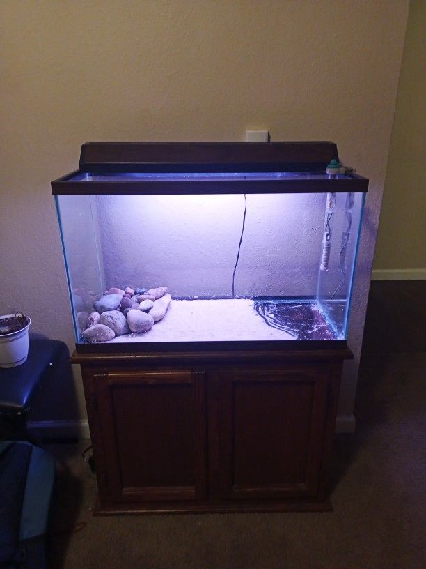 40 Gallon Fish Tank With Lamp Rocks And Sand And Heater.