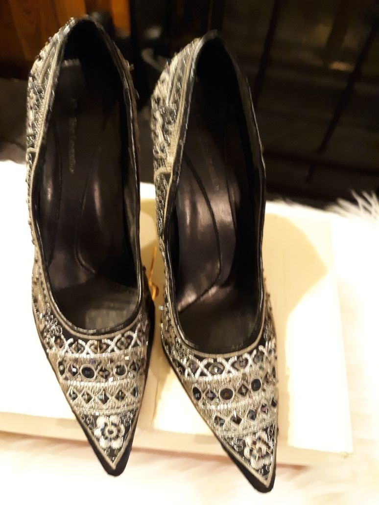 Black and white pumps with tiny black stones. black heels 4" , size 8, lightly worn...Nice