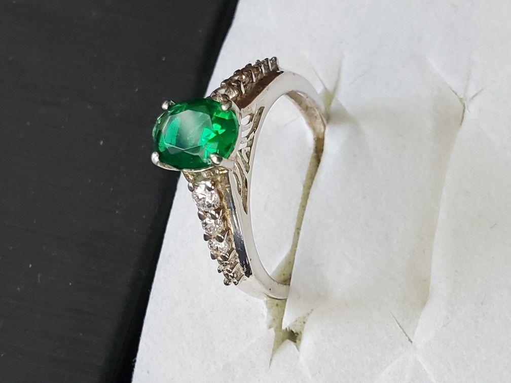 Platinum over Sterling Silver Lab cultured 1.00 CT Emerald & .50 CT diamonds, size 7. New , never worn in gift box $200. as pictured. Perfect for Easter, Mother Day or May Birthday. For in-person, masked, pick-up, porch transaction- Mission Hill 02120 location CASH Only / Firm $200 Venmo on weekends or mornings only. If it's posted, it's available. Serious inquiries only. To set-up time, message via app. only, No giving phone # or delivery, don't ask.