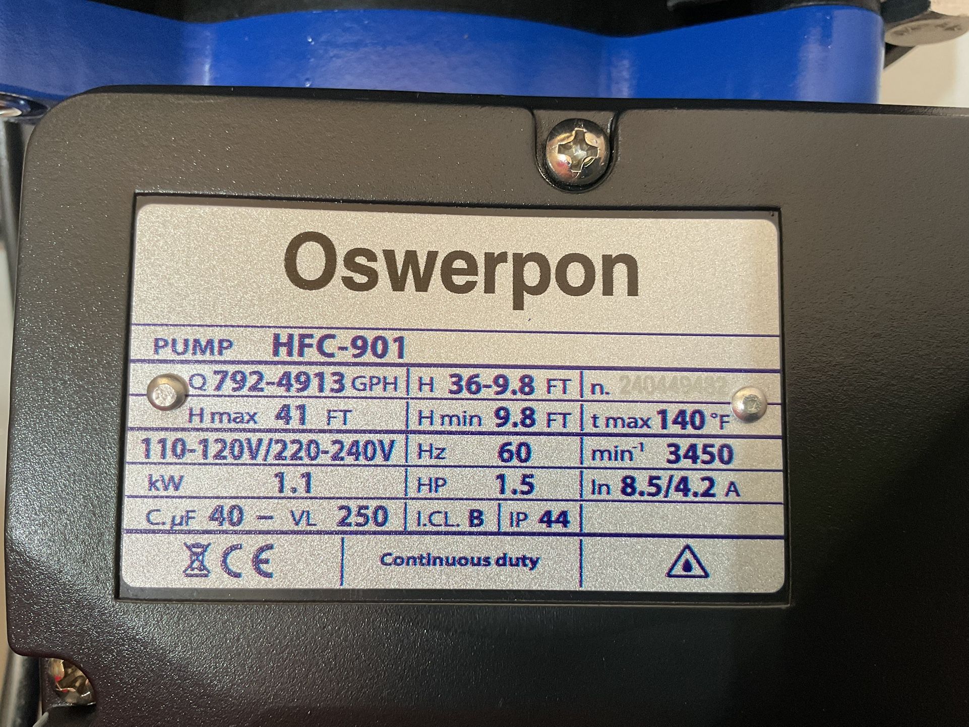NEW Oswerpon 1.5HP pump, Model HFC-901 * Price Firm (as listed) * PRECIO FIRME * No HOLDs * First come, First Serve * Local pickup * Southside Pickup by I-37 & SE Military Dr., 78223 * Brook City Base Area