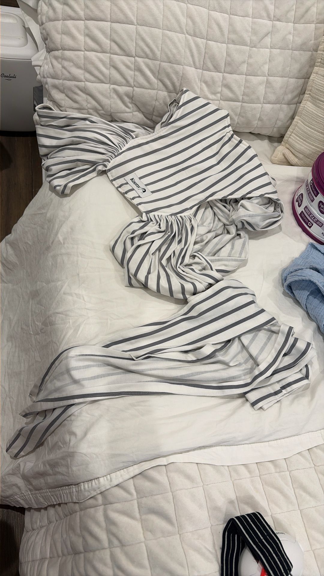 The most simple baby carrier around-easy to put on. Retails for $60 on Amazon.