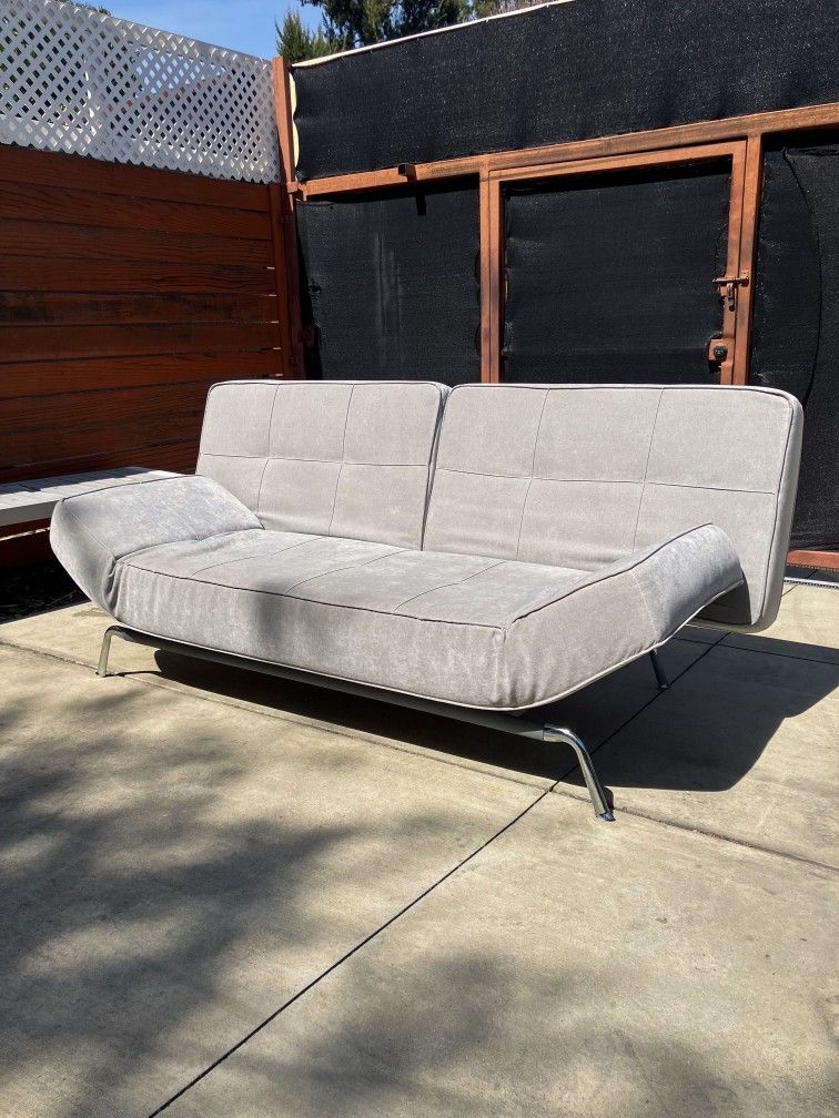 Luxe Designer Ligne Roset Fabric Smala Convertible Sofa Bed Futon - Light Gray
