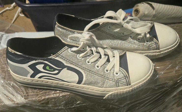 Official Seattle Seahawks Glitter Low Top Sneakers Ladies Sz 9 New
